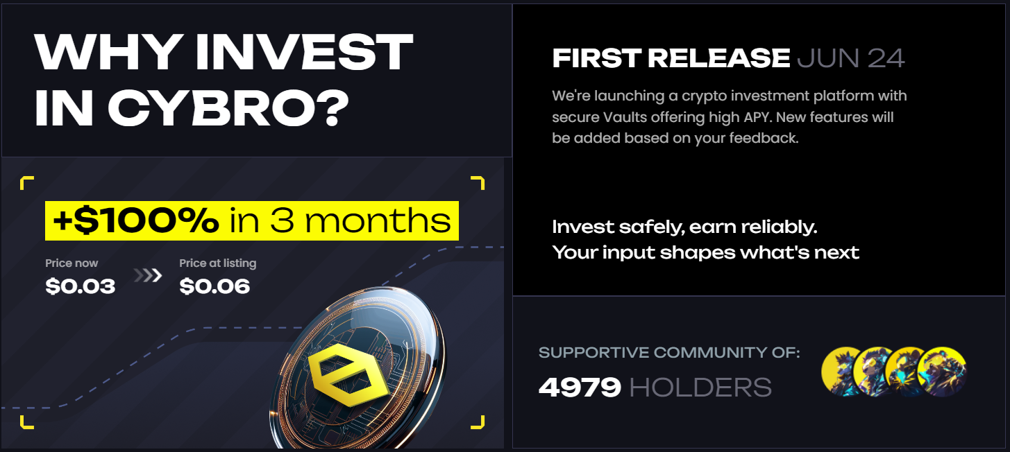Viditeľnosť CYBRO na trhu vzrástla po tom, ako bola uvedená na burzách Blast Explorer a CoinGecko. Tím poskytuje mesačné správy, čím zabezpečuje transparentnosť. Okrem toho udržiava bezpečnosť prostredníctvom programu Bug Bounty, ktorý prideľuje odmenu 25 000 USD za nahlásenie bezpečnostných chýb.