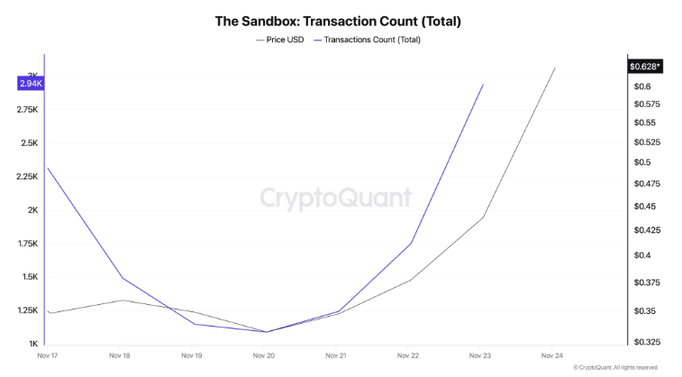 Kľúčovou rolu pri cenovom vzostupe zohrali zvýšené transakčné aktivity. Ako uvádza magazín CryptoQuant, denné transakcie SAND dosiahli počet 2 940. Ďalším indikátorom je rapídny nárast výberov z búrz. Token za jediný deň zaznamenal 877 výberov, čo je najvyššie číslo od júna 2023. Tento trend často naznačuje rastúcu dôveru investorov a potenciálnu dlhodobú držbu aktíva.