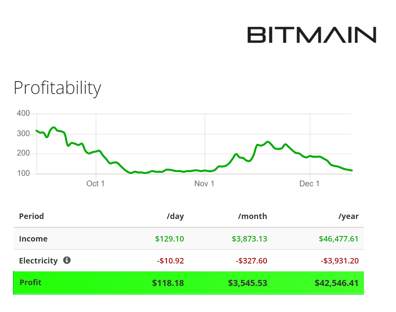 Vzhľadom na prechod ťažby z grafických kariet na takzvané mining rigy alebo aj výkonne ťažobné zariadenia, zisk pri týchto strojoch bol prvé dni aj niekoľko tisíc eur. Cena zariadenia sa ale pohybovala na hodnote okolo 50 000 eur a návratnosť bola rekordný jeden mesiac.