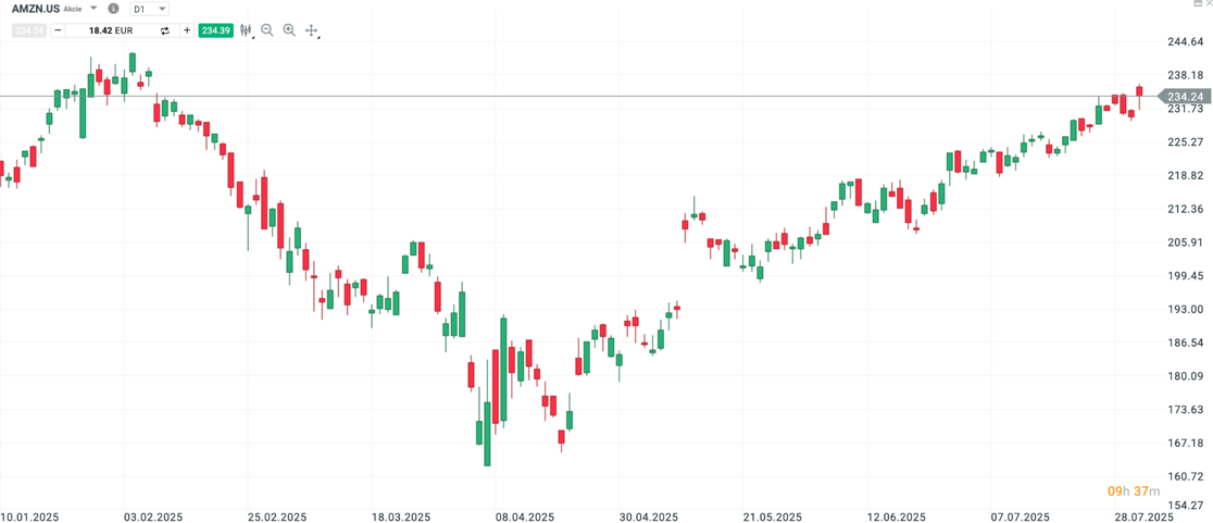 Amazon prekonal očakávania trhu v oblasti ziskov aj tržieb a zvýšil výhľad tržieb na ďalší štvrťrok. Napriek tomu akcie oslabili približne o 8 %. Dôvodom bola najmä stagnácia v kľúčovom cloudovom biznise AWS a mierne horší výhľad ziskovosti.