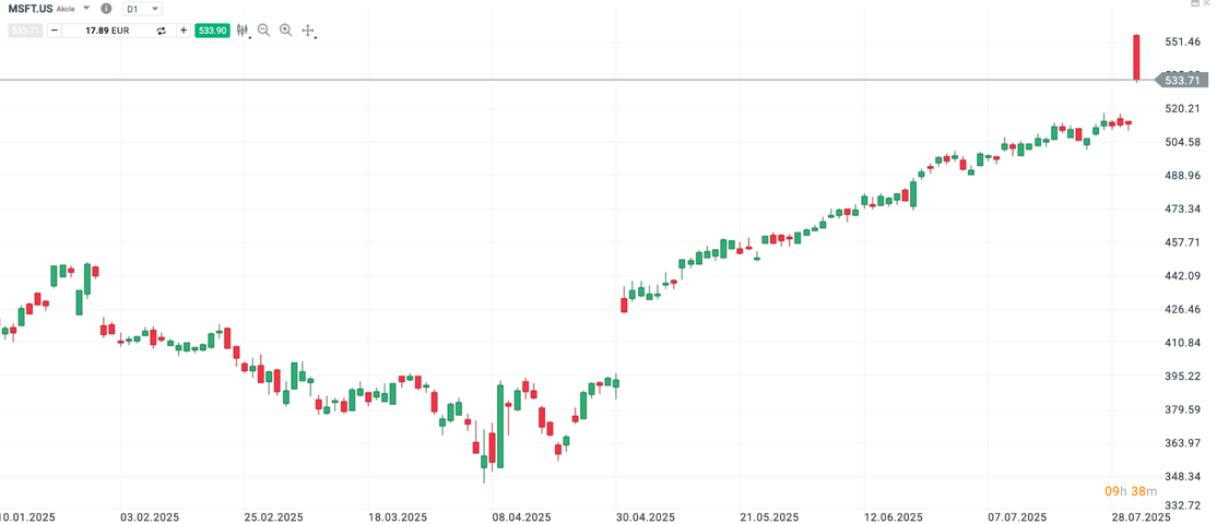 Microsoft opäť ukázal svoju silu. Kľúčový cloudový segment Azure vzrástol o 39 %, čo svedčí o silnom dopyte po riešeniach využívajúcich umelú inteligenciu. Celkové tržby spoločnosti dosiahli 75 miliárd dolárov a výhľad bol opäť zvýšený. Jediný pokles zaznamenal segment herných konzol Xbox. Akcie napriek tomu vzrástli o približne 8 %.