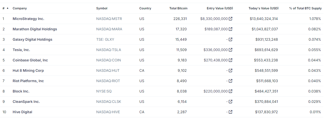 Michael Saylor je výkonný predseda spoločnosti Microstrategy, ktorá sa môže pochváliť celkovou držbou mincí 226 331 BTC, ktoré dosahujú hodnotu až 13,6 miliardy dolárov. Ide o bezkonkurenčne najväčšieho držiteľa Bitcoinu spomedzi všetkých firiem na svete. Len aby ste mali predstavu, na druhom mieste je ťažobná firma Marathon Digital s držbou 17 320 BTC a nasleduje Galaxy Digital s 15 449 BTC, podľa údajov CoinGecko.