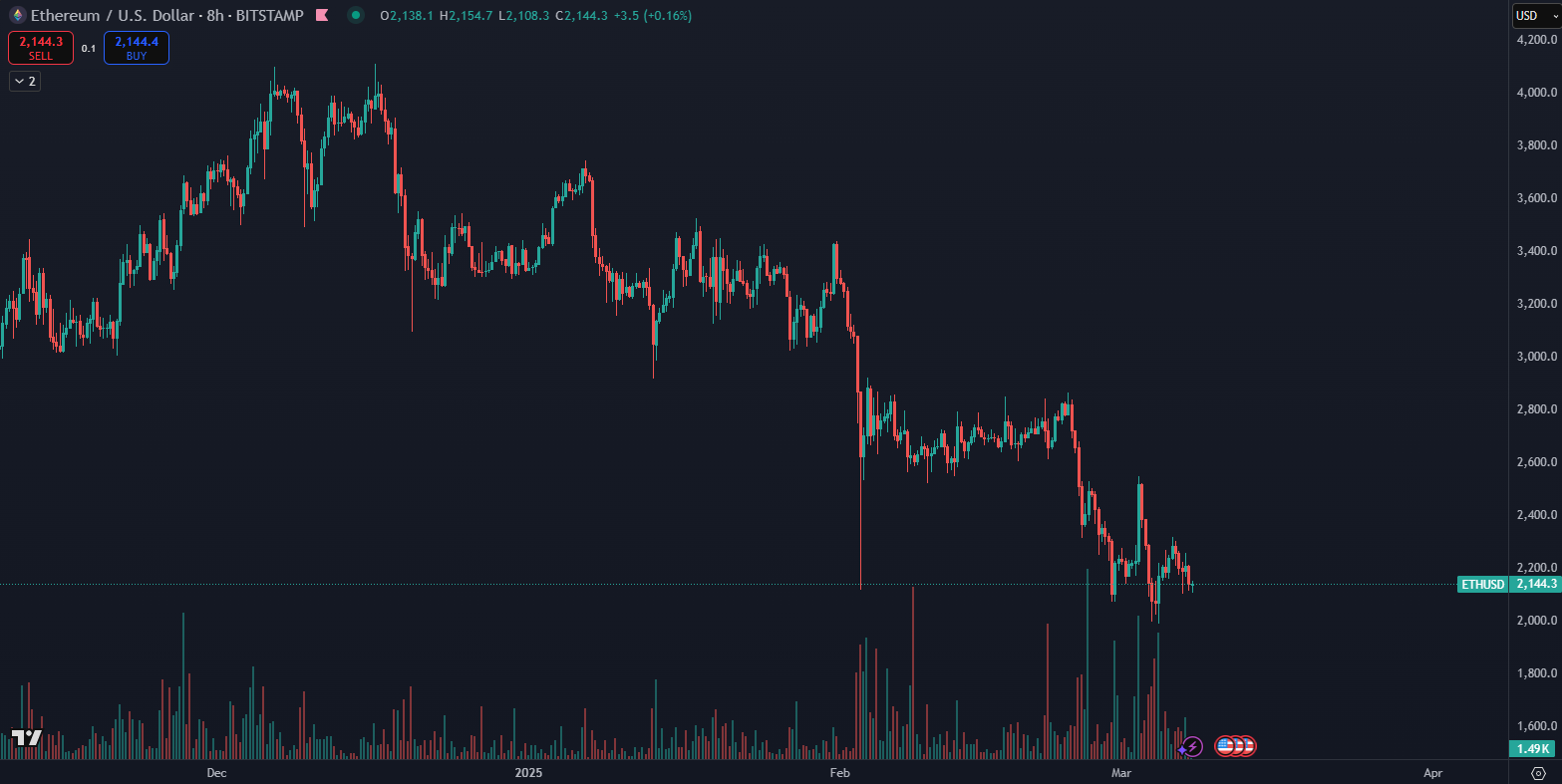 Ethereum v tomto roku neustále klesá a vytvára výrazne nižšie lokálne maximá aj minimá. Od polovice decembra sa hodnota Etherea prepadla o 50 % a zatiaľ cena nenasvedčuje tomu, žeby sa trend mal obrátiť, uakzujú údaje TradingView.
