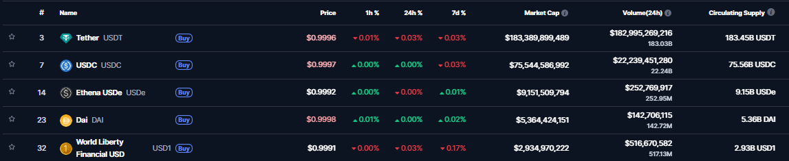 Tether vydáva bezkonkurenčne najväčší stablecoin na svete. Zdroj: coinmarketcap.com