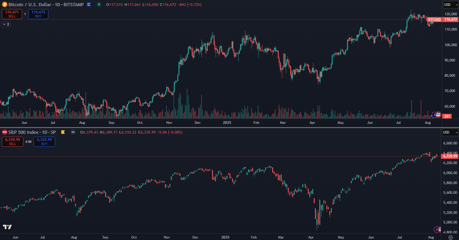 - BTC čoraz viac kopíruje správanie akciového trhu.