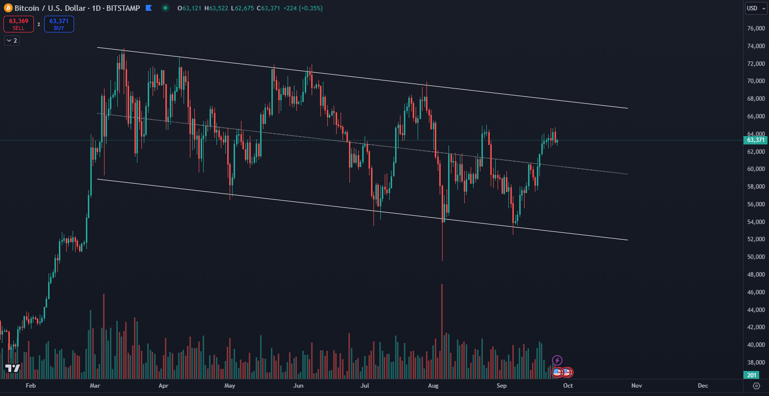 Bitcoin už polroka mierne klesá. Zdroj: TradingView
