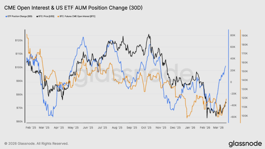 Kombinácia rastúceho objemu majetku pod správou v ETF fondoch a stále utlmených futures pozícií naznačuje rannú fázu opätovného zapojenia inštitúcií. Ak by sa otvorený záujem na CME začal rozširovať súčasne s prítokmi do ETF, vyslalo by to signál o rastúcom presvedčení investorov. Takýto súbeh by pravdepodobne výrazne posilnil silu súčasného vzostupného trendu.