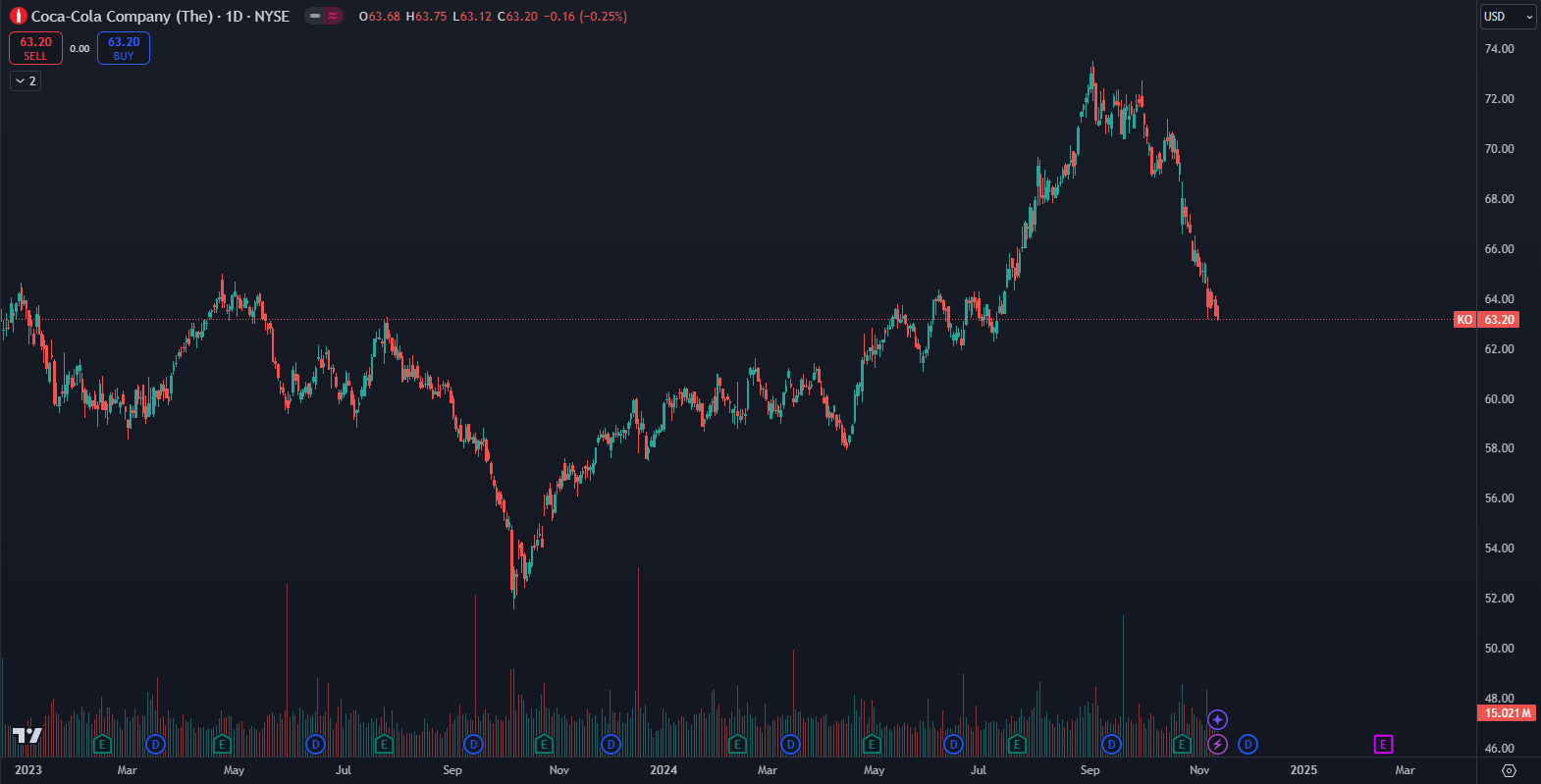 Akcie spoločnosti Coca-Cola (NYSE: KO) sa momentálne nachádzajú na najnižšej úrovni od októbra 2023. Napriek celkovému pozitívnemu rastu o 6,95 % od začiatku roka 2024 zaznamenali v poslednom mesiaci dramatický prepad o 9,04 % na hodnotu 63,21 dolárov, čo znepokojuje mnohých investorov.