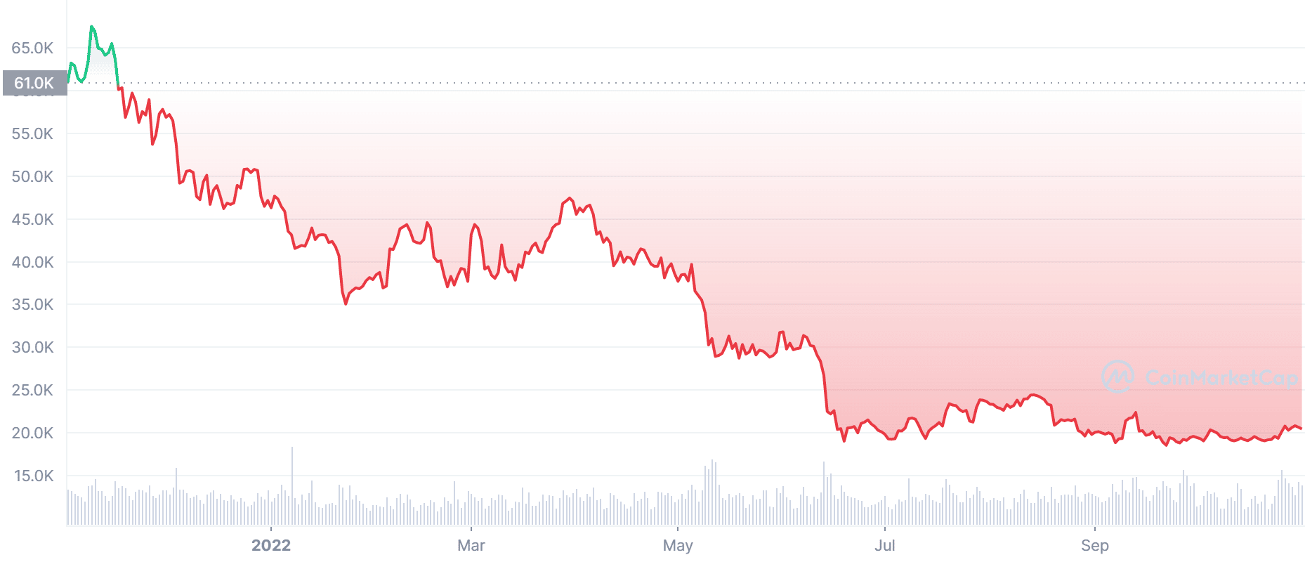 Ako už tradične Bitcoin zvláda klesajúci trend najlepšie spomedzi známych altcoinov. Pokles o 70 % za posledný rok síce nie je príjemný, ale pokiaľ používame metódu DCA, tak si vstupnú cenu môžeme spriemerovať na výrazne nižšiu.