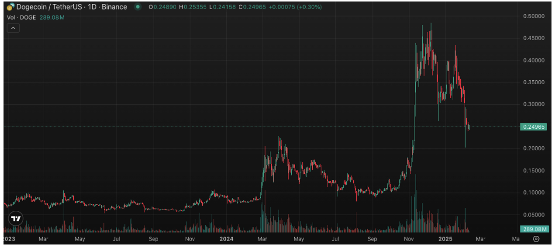 V súčasnosti sa DOGE obchoduje okolo hodnoty 0,2519 dolárov. Čelí odporu na úrovni 0,2592 dolárov, pričom podporu nachádza pri hodnote 0,2400 dolárov. Udržanie tejto podpornej úrovne je kľúčové pre pokračovanie rastového trendu. Jeho silná komunita a stabilný dopyt z neho robia kryptomenu hodnú sledovania.