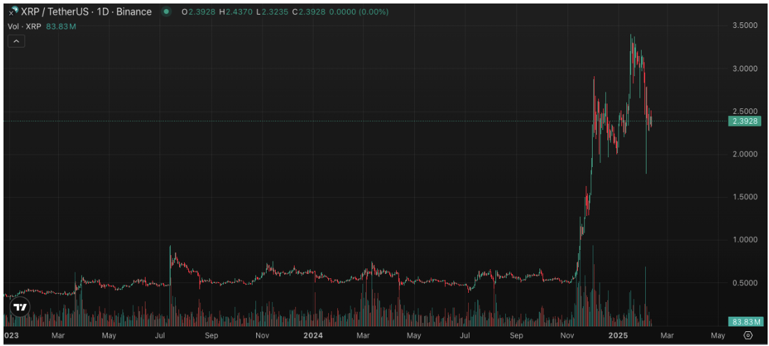 Ak by sa história opakovala, XRP by mohlo vzrásť z 1,71 dolárov na 27 dolárov, sledujúc Fibonacciho úroveň 1,618. Pre realizáciu tohto scenára musí XRP udržať kľúčové cenové úrovne a preukázať silný dopyt.