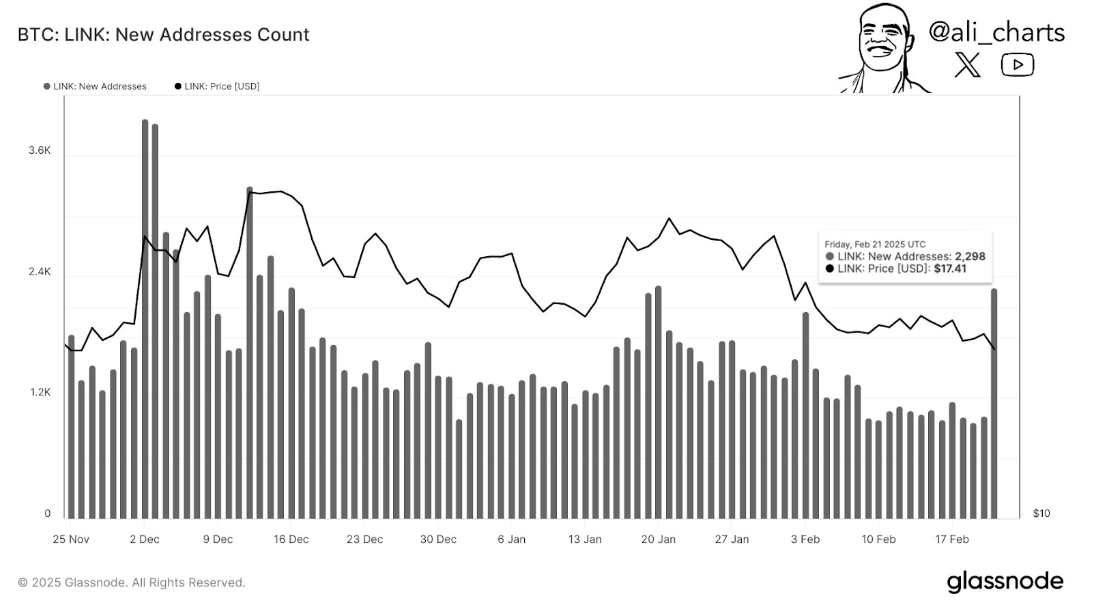 Napriek náročným cenovým pohybom sieťová aktivita Chainlinku naďalej expanduje. Počet nových LINK adries dosiahol pozoruhodných 2 298, čo predstavuje nové maximum od januára. Tento nárast záujmu o ekosystém tokenu jasne dokumentuje rastúcu pozornosť investorov.