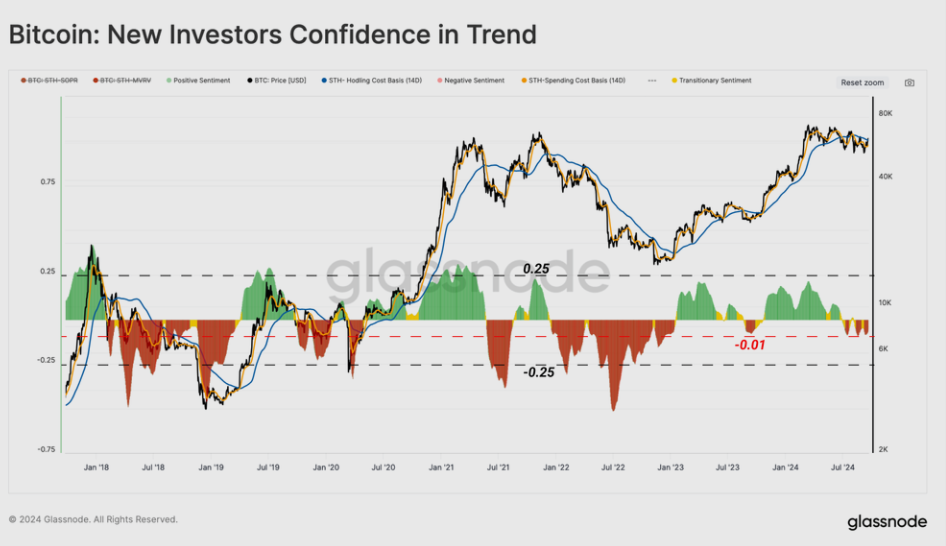 Podľa údajov od Glassnode Bitcoin dočasne prekonal nákladovú základňu krátkodobých držiteľov (modrá krivka na grafe), ktorá je na úrovni 61 900 dolárov. Táto hodnota predstavuje priemernú nákupnú cenu tých, ktorí držia Bitcoin kratšie ako 5 mesiacov. Bol taktiež prelomený 200-dňový kĺzavý priemer (63 900 dolárov) po znížení úrokovej sadzby Federálnym rezervným systémom o 0,50 %.