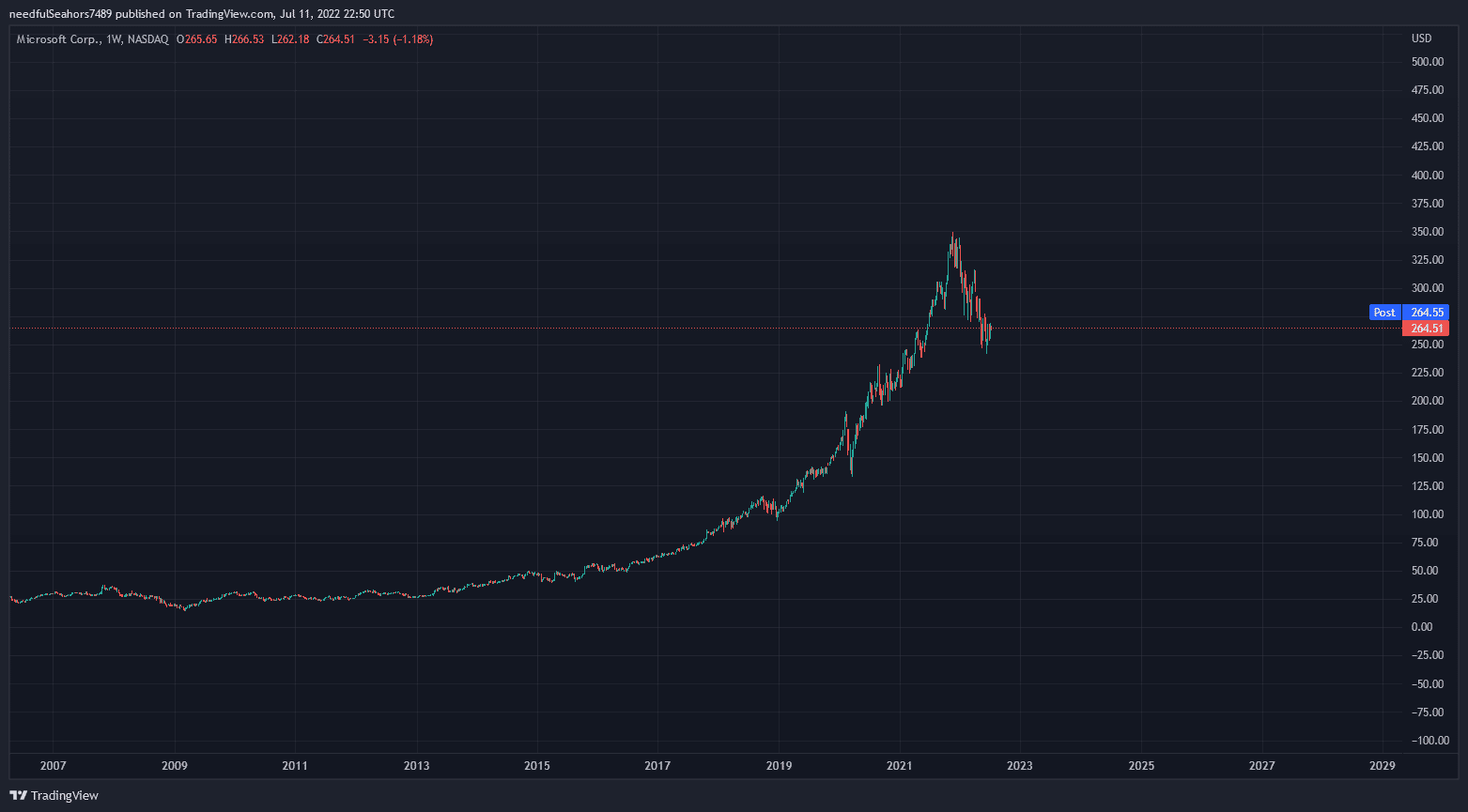 Investovanie do jednotlivých akcií so sebou prináša riziká. Napríklad ak by ste investovali do akcií Microsoftu v rokoch 2001 až 2014, boli by ste za 13 rokov takmer na rovnakej cene, keďže akcie spoločnosti šli viac-menej do strany. Ak by ste sa rozhodli ich po tejto dobe predať, pripravili by ste sa o tučný zisk, keďže odvtedy narástli o takmer 853 % (pozri graf nižšie).