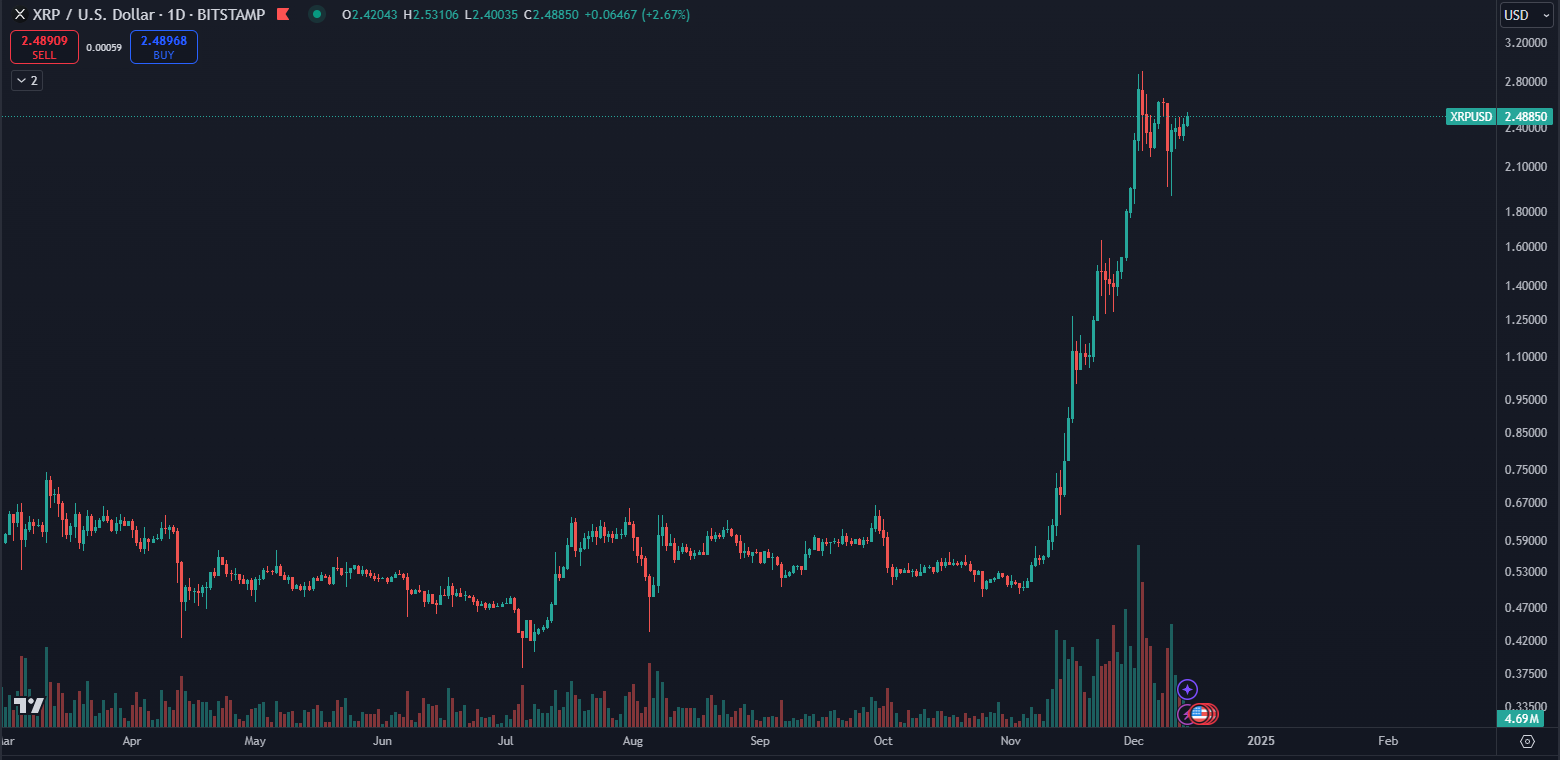 • Kryptomena XRP dominuje trhu s rekordným denným objemom obchodov presahujúcim 12 miliárd dolárov.