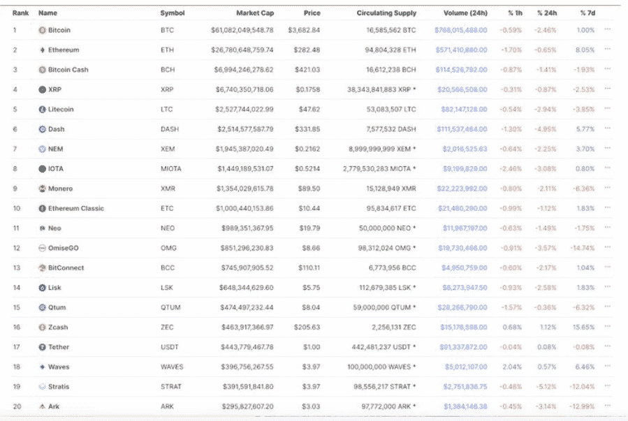 Pohľad na kryptomeny z roku 2017 ukazuje výrazne odlišné zloženie v porovnaní so súčasnosťou. Bitcoin a Ethereum zostávajú na prvom a druhom mieste. XRP, Litecoin a Tether sú tiež na zozname. Ale to je všetko. Zvyšok zoznamu je kompletne odlišný.