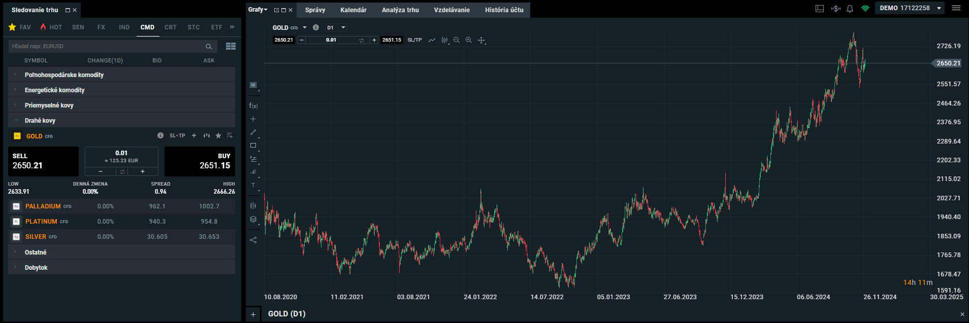 Zlato za posledný rok prekonalo opakovane historické maximum. V čase písania sa obchoduje na cene 2 650 dolárov, pričom historické maximum bolo dosiahnuté na úrovni 2 790 dolárov počas 31. októbra 2024. Podľa údajov Curvo zlato za posledných 45 rokov dosiahlo priemerné ročné zhodnotenie 6 %.