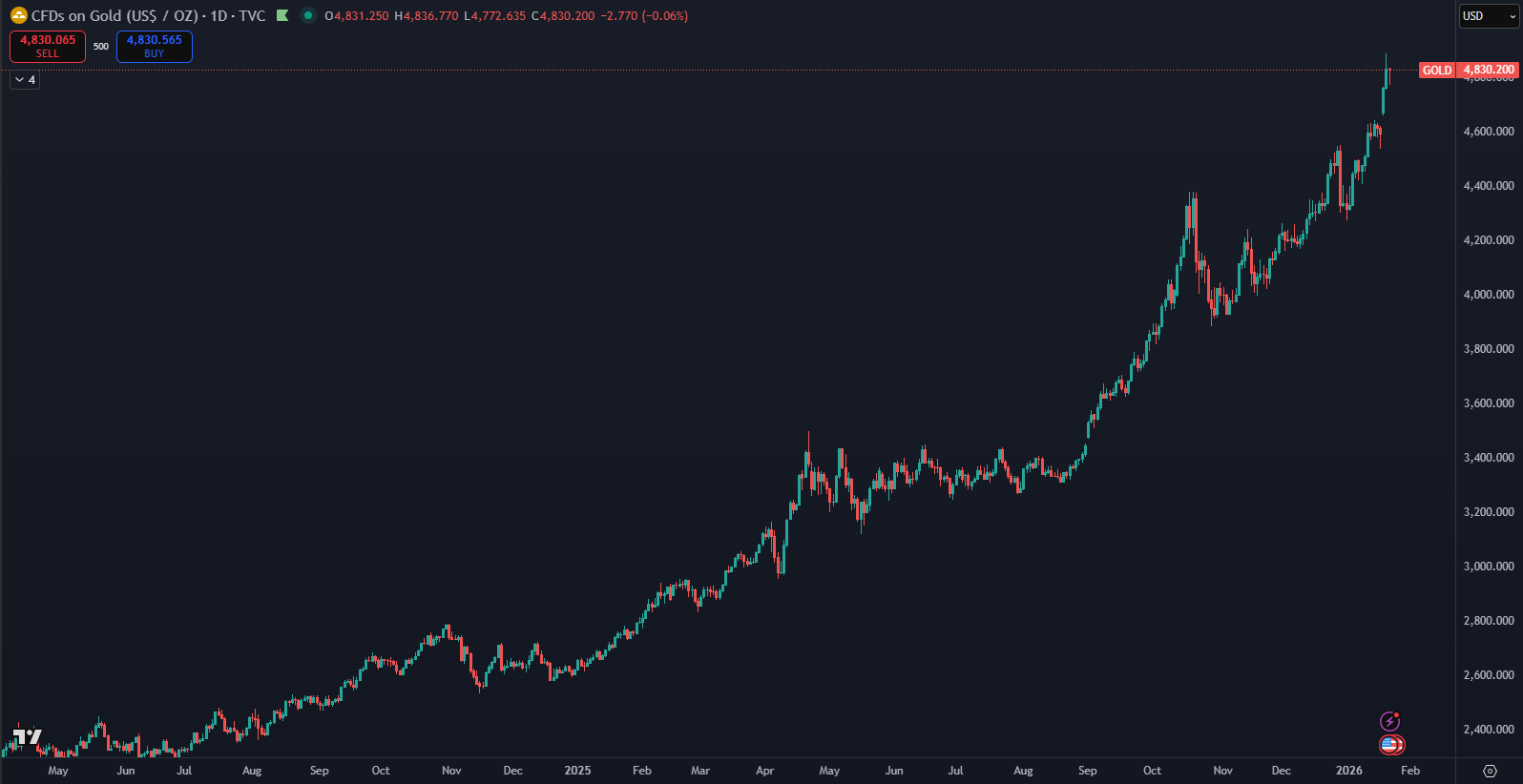 Nedávno zlato dosiahlo historický vrchol 4 888 dolárov a za posledný rok zaznamenalo rekordný rast. To potvrdzuje jeho silnú pozíciu ako bezpečného prístavu pre investorov.