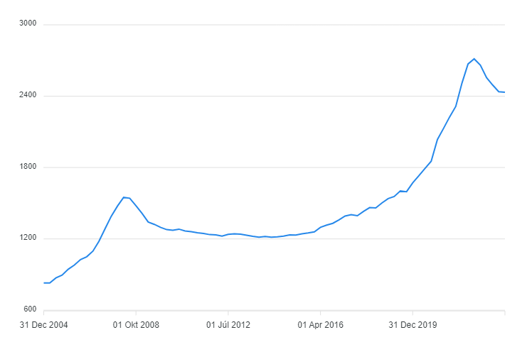 Ak totiž čakáte na pokles sadzieb, síce budete mať lacnejšiu hypotéku, no do tej doby stúpnu ceny nehnuteľností. Takže najideálnejšie obdobie na kúpu zrejme nebude nikdy. Kým v polovici roku 2012 sa pohybovala priemerná cena za m2 na Slovensku tesne nad 1 200 eur, dnes je to už dvojnásobok, vyše 2 400 eur.