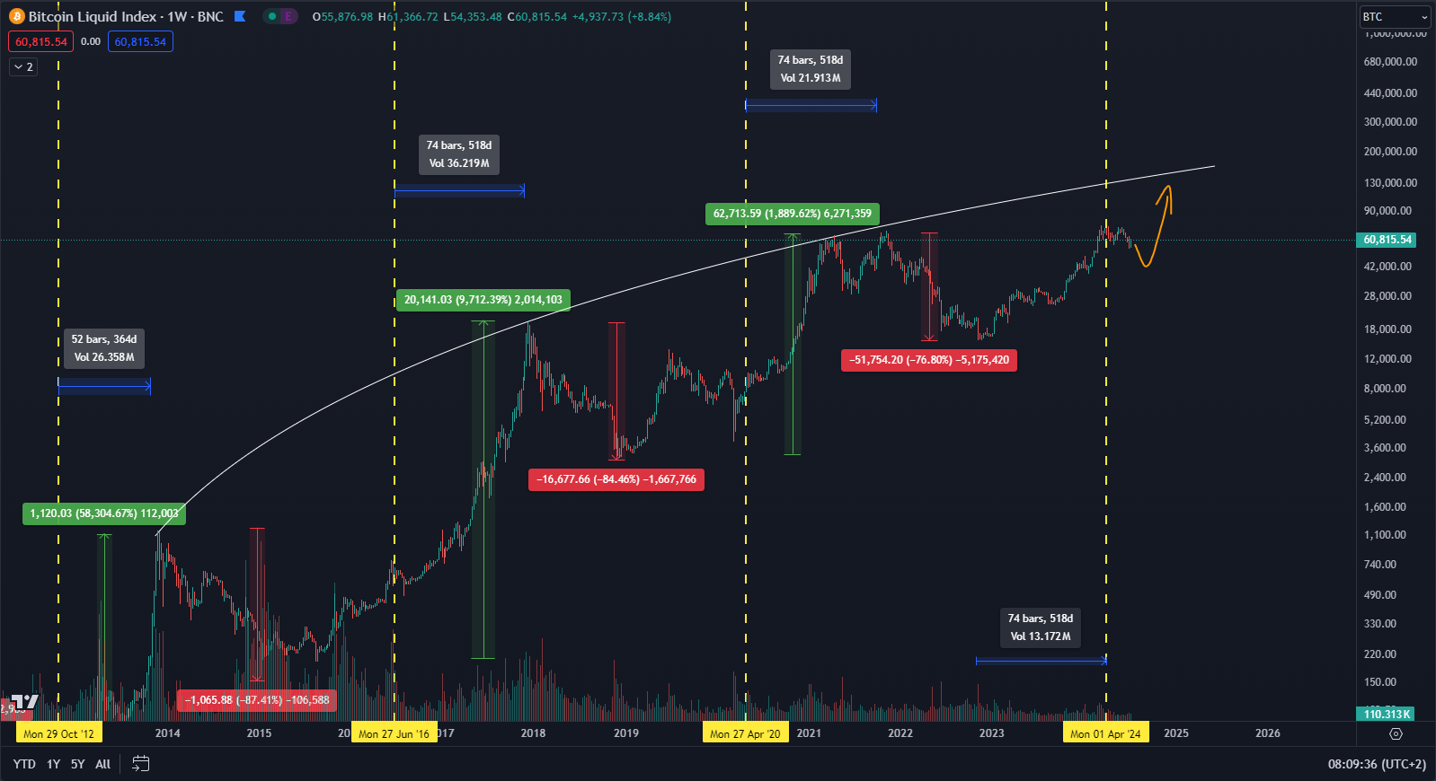 V rámci tohto scenára veríme, že táto rezistencia bude napokon platná o čosi dlhšie. To znamená, že Bitcoin by sa prepadol pod 50 000 dolárov pred ďalším rastom. Je ale potrebné brať na vedomie, že ak by došlo k tomuto scenáru, porušila by sa cyklovosť. Bitcoin totiž neformuje hlbšie korekcie ako 30 % počas bullrunov.