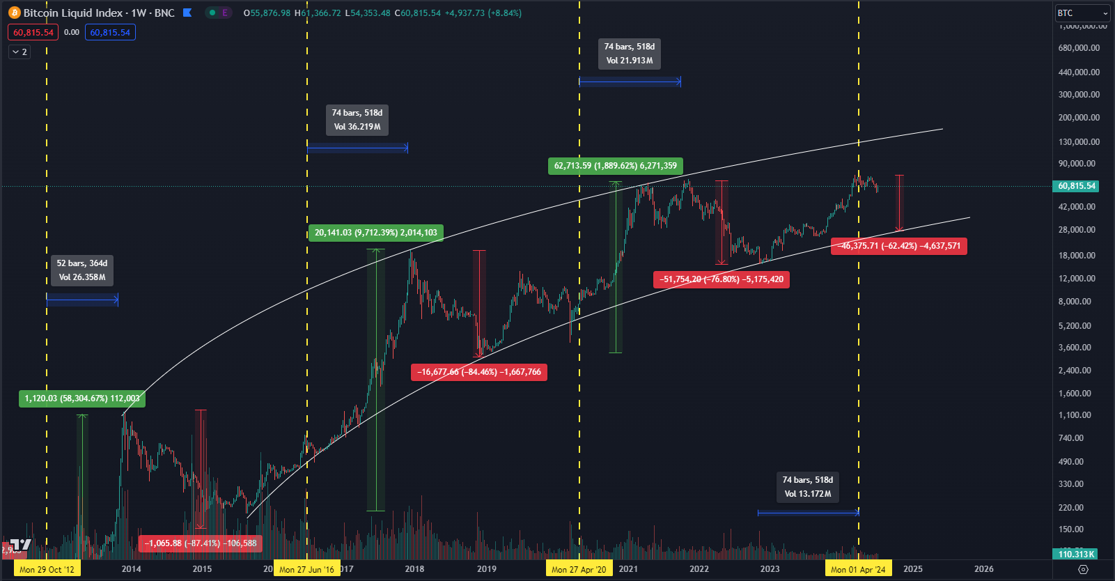 Ak by došlo k takémuto poklesu, cyklovosť by bola ukončená. Bitcoin totiž doteraz vždy prekonal predošlé maximum niekoľkonásobne. V tomto cykle sa tak zatiaľ neudialo a cena až príliš dlho nevie prekonať posledné ATH.