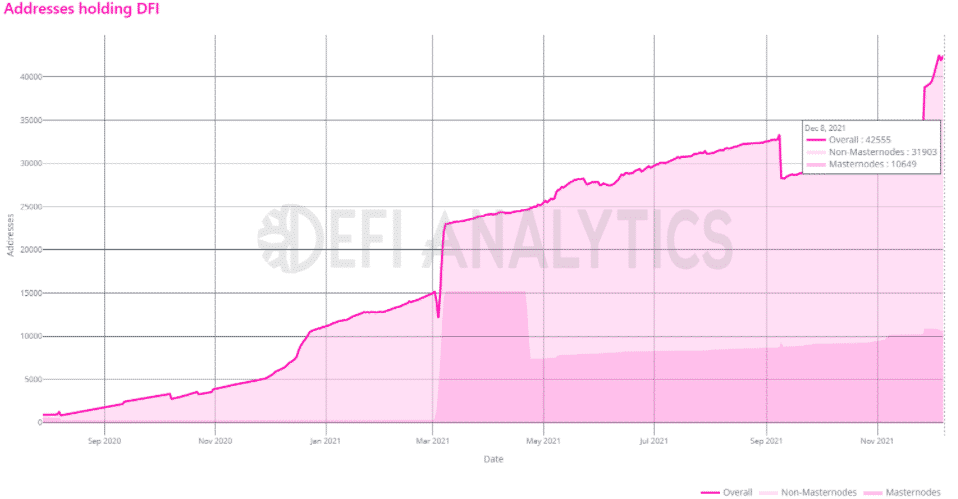 Pridané funkcie tiež pomohli prilákať nových používateľov do ekosystému DFiChain, pričom počet jedinečných peňaženiek s DFI dosiahol 8. decembra nový rekord 42 555.