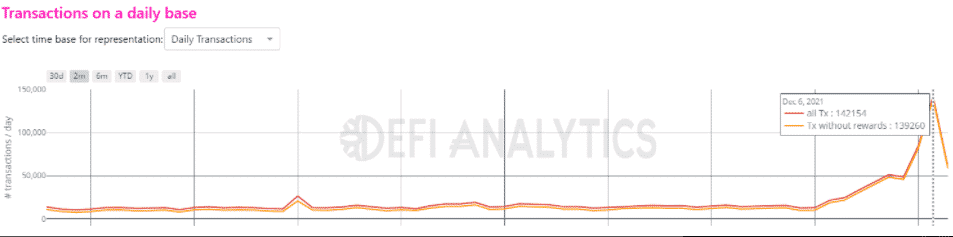 Ďalším dôvodom silného výkonu bol nárast transakcií v sieti po uvoľnení decentralizovaných aktív.