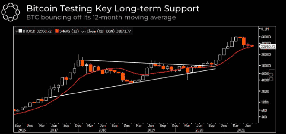 Dlhodobý rastúci trend Bitcoinu zostáva nedotknutý, keďže jeho cena v súčasnosti testuje 12-mesačný kĺzavý priemer, čo je dôležitá úroveň podpory, ktorá určí, kam bude cena smerovať.