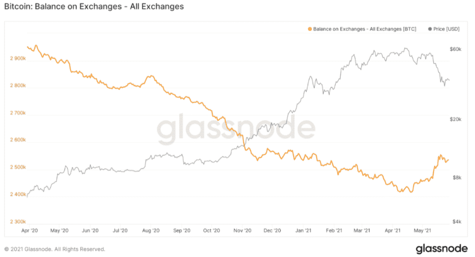 Obchodníci vkladajú Bitcoiny do svojich peňaženiek iba vtedy, keď ich chcú buď predať za fiat, alebo vymeniť za iné digitálne aktíva. Vďaka tomu sa zvyšujú rezervy BTC na obchodných platformách.