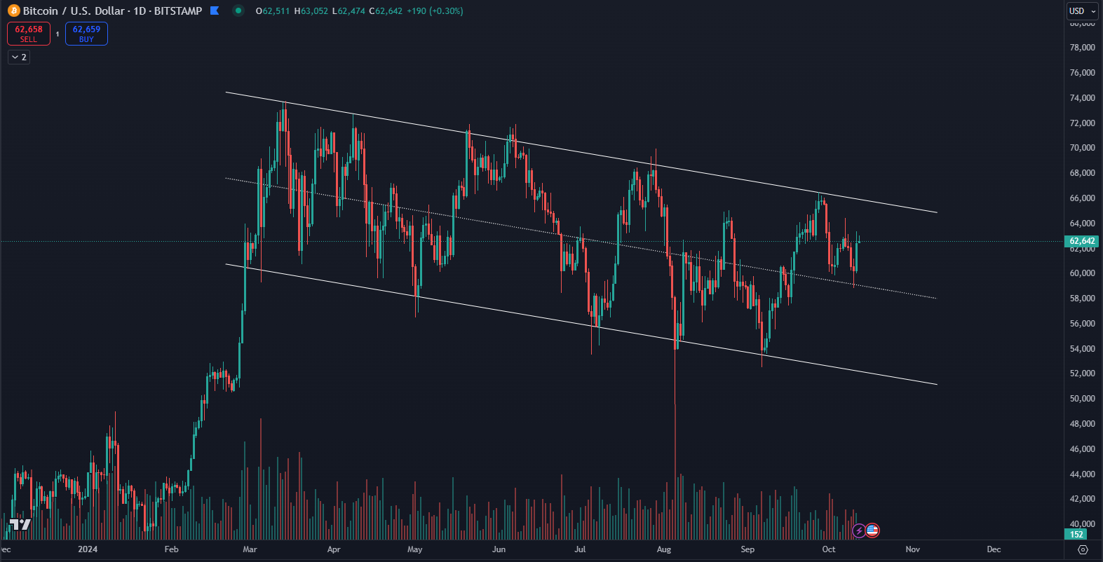 Je dôležité upozorniť na fakt, že Bitcoin podľa údajov TradingView stále neukončil klesajúcu štruktúru, ktorá začala v polovici marca tohto roku. Napriek tomu je cena blízko historického maxima. Ak by skutočne nastalo prerazenie posledného odporu, boli by sme svedkami vysokej volatility a ziskovosti celého trhu.