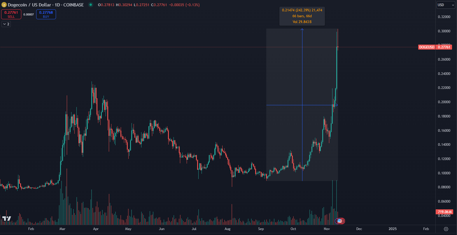 Pri momentálnej trhovej hodnote 0,28 dolára a celkovej trhovej kapitalizácii dosahujúcej úctyhodných 41,22 miliardy dolárov na základe údajov CoinMarketCap zaznamenal tento meme coin za posledné turbulentné dva mesiace skutočne pôsobivý nárast o neuveriteľných 240 %. Renomovaní technickí analytici na základe súčasných trhových indikátorov predpovedajú možný ďalší prudký rast až k psychologicky významnej hranici 0,5 dolára.