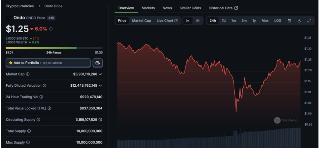 Trhové údaje o ONDO. Zdroj: X