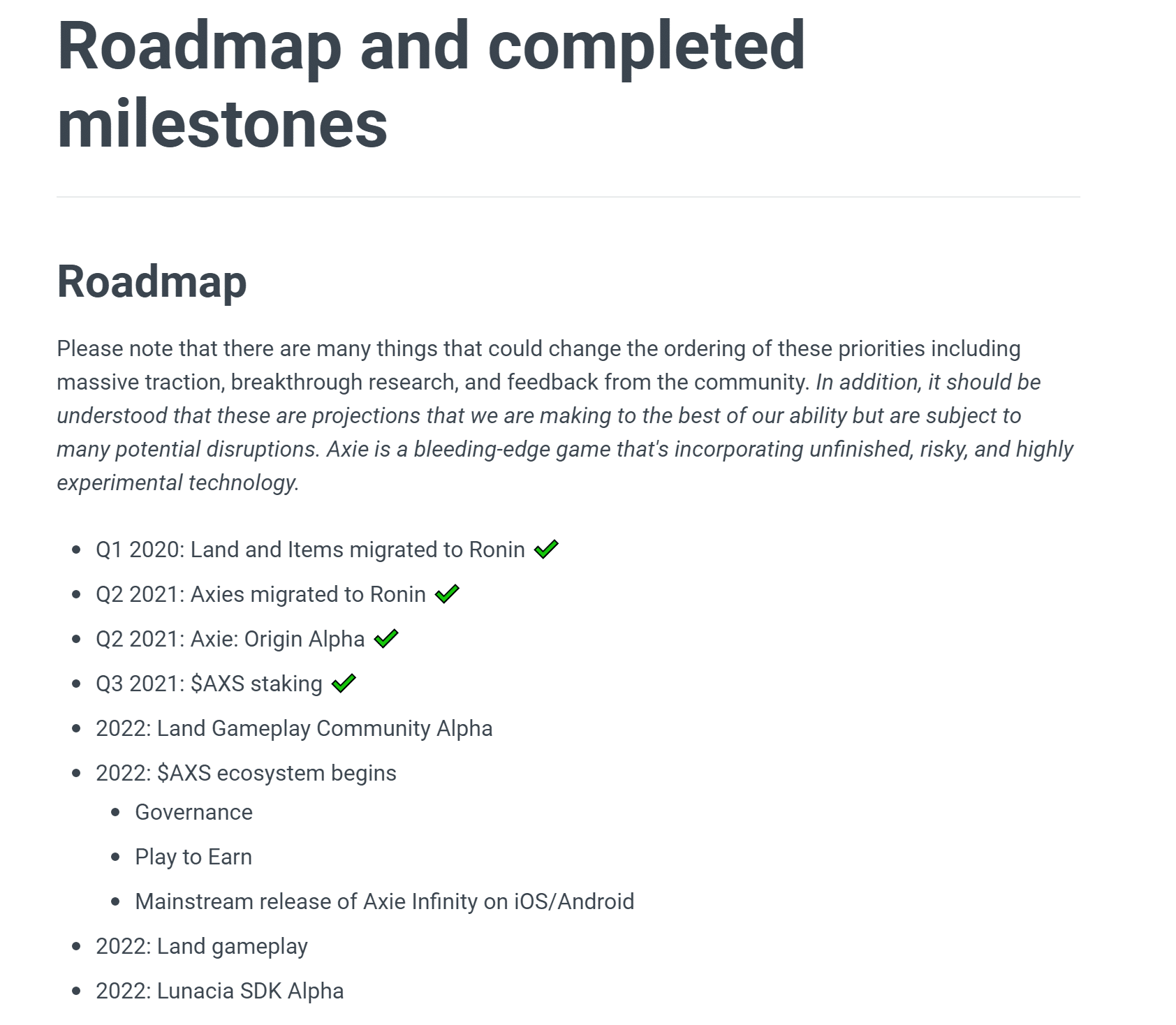 Roadmap kryptomeny AXS. Zdroj: axieinfinity.com