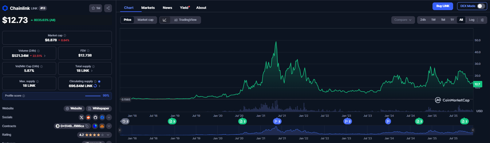 Cena kryptomeny Chainlink. Zdroj: coinmarketcap.com