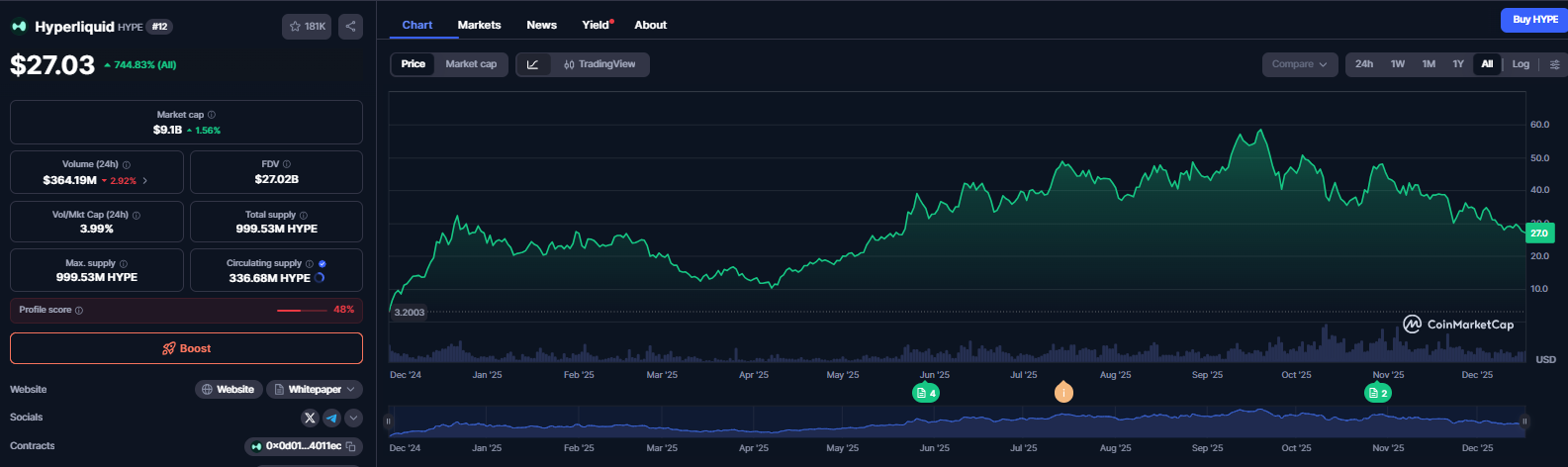 Hyperliquid patrí medzi novšie kryptomeny, no rýchlo si získal pozornosť trhu. Projekt sa zameriava na decentralizované obchodovanie derivátov s vysokou rýchlosťou a nízkymi poplatkami.