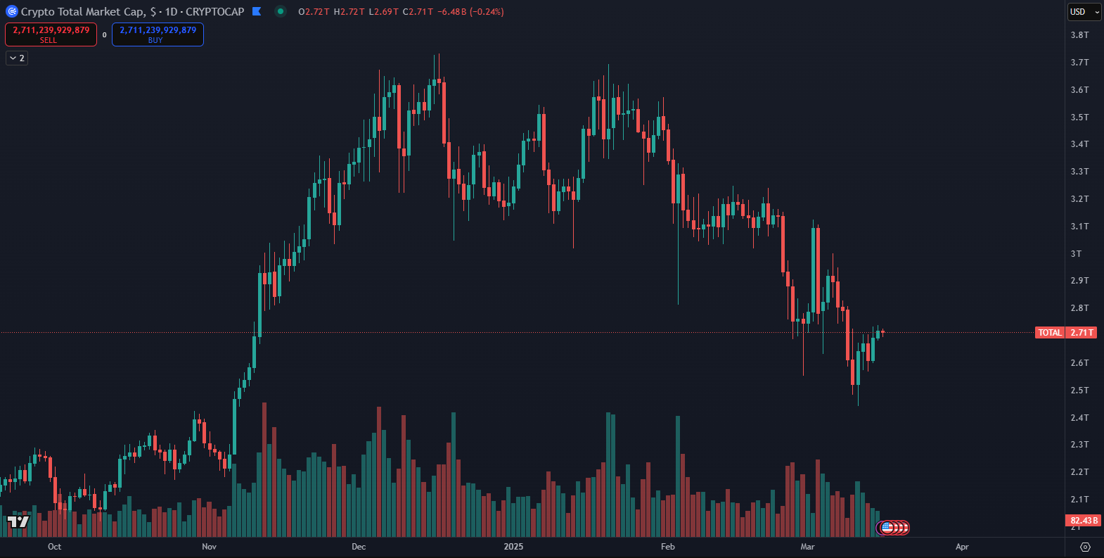Kryptomeny majú za sebou masívne znehodnotenie. Začiatok roka 2025 bol pre kryptomenový trh mimoriadne náročný. Po optimistických predpovediach z konca roku 2024 prišiel prudký pokles, ktorý zasiahol nielen menšie altcoiny, ale aj veľké projekty ako Bitcoin či Ethereum. Ethereum kleslo až o 60 %, čo je významná korekcia, akú sme nevideli od roku 2022. Podľa údajov z TradingView z trh zmizlo za 50 sní až 1,25 bilióna dolárov.
