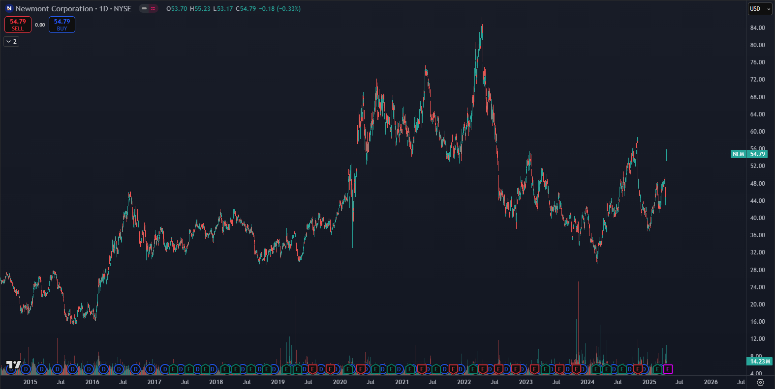 Akcie NEM narástli v roku 2025 o +47,69 %, čo je obrovský skok, ak vezmeme do úvahy, že index S&P 500 za rovnaké obdobie klesol o -8 %. Rast tak do značnej miery kompenzoval pád z roku 2022.