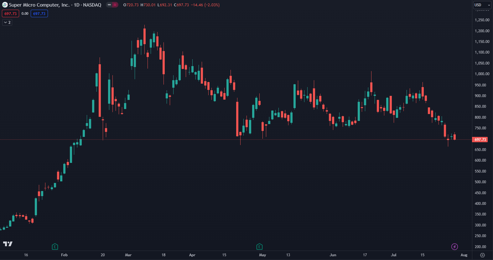 Hlavným dôvodom rastu akcií je dopyt po umelej inteligencii. Spoločnosť taktiež minulý rok oznámila strategické partnerstvo s popredným dizajnérom AI mikročipov Nvidia. Výsledkom je, že akcie SMCI sú zatiaľ najziskovejšie v indexe S&P 500 pre rok 2024 s celkovým ziskom 150,54 %.