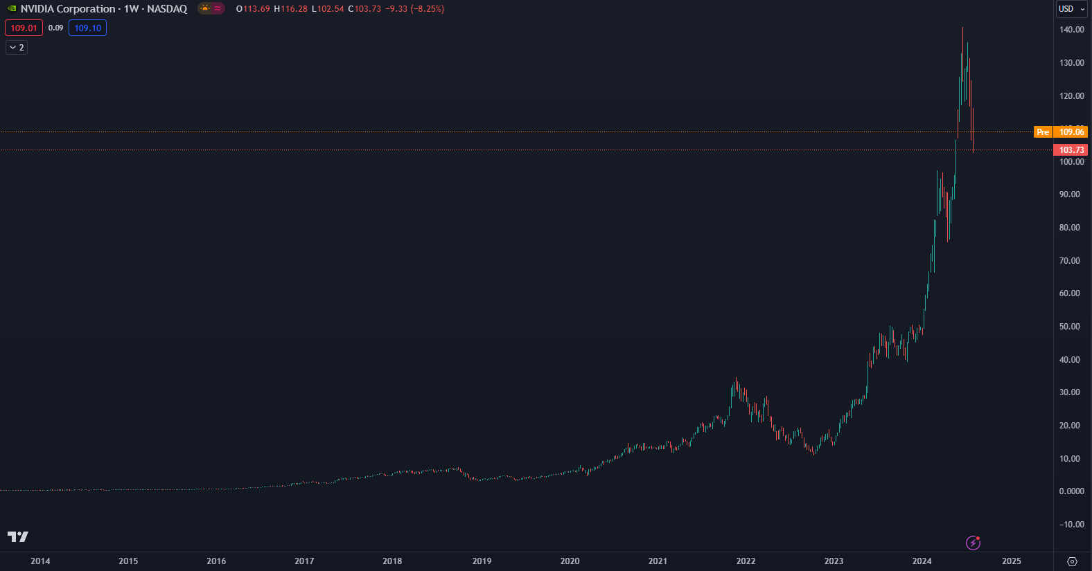 Akcie NVDA stúpli podľa Ycharts za posledných 10 rokov o 26 553,7 %. Ide tak o 2. najziskovejšiu akciu za toto obdobie. Za posledných 25 rokov ide dokonca o najziskovejšiu akciu s celkovým zhodnotením 309 990,4 %. Tieto čísla sú extrémne vysoké aj na pomery kryptomien.