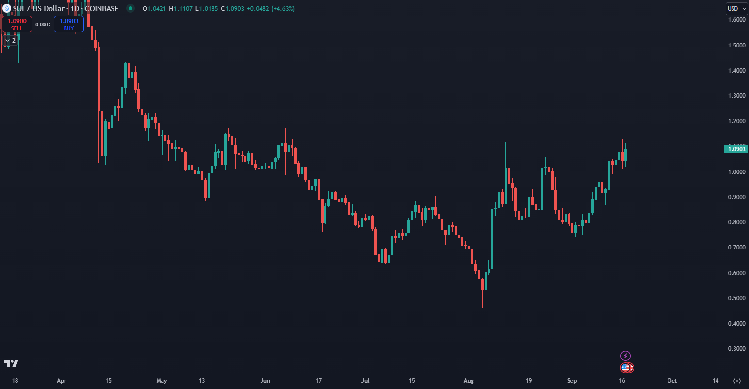 SUI je podľa CoinMarketCap 27. najväčšia kryptomena na svete s trhovou kapitalizáciou 2,92 miliardy dolárov. Denný objem obchodovania dosahuje 16,67 % z kapitalizácie v celkovej hodnote 490 miliónov dolárov.