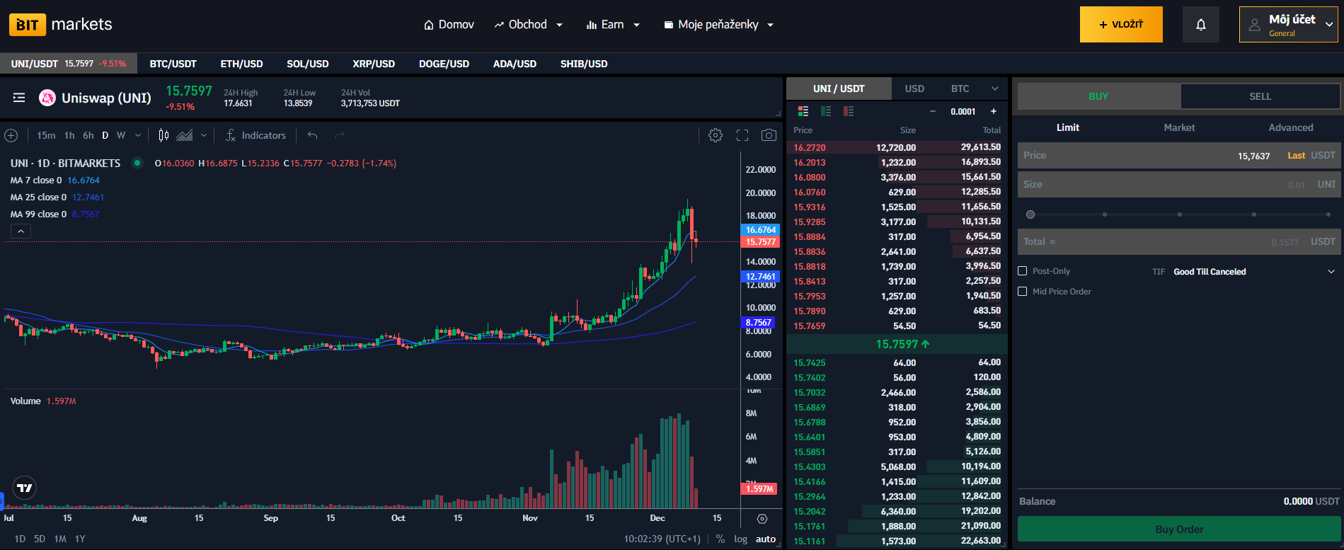 UNI zaznamenal za jediný mesiac zhodnotenie o 196 %, čím sa zaradil medzi najziskovejšie kryptomeny súčasnosti. Naposledy sa UNI obchodoval na rovnakých cenových úrovniach ešte v decembri 2021. Na obrázku nižšie môžete vidieť, ako jednoducho dokážete nakúpiť UNI na BITmarkets.