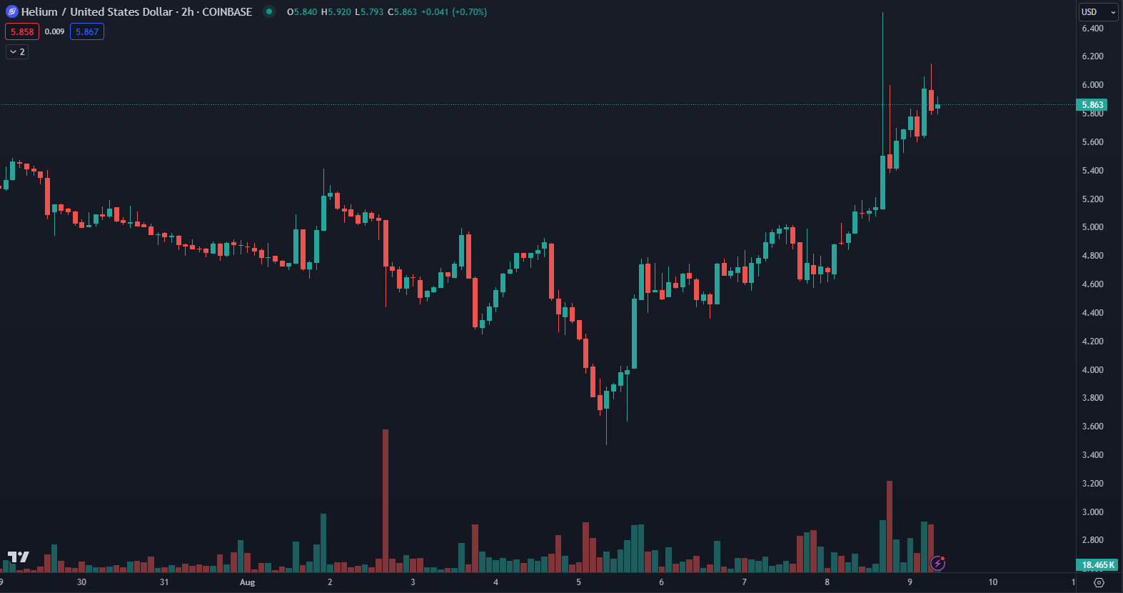 Cena HNT zaznamenala za posledný týždeň vzostup v hodnote 16,58 %. Ide o kryptomenu, ktorá ako jedna z mála odolala predajnému tlaku a krachu. Dokonca za posledné 4 dni cena vytvorila zhodnotenie 68,37 %. Tento rast je obzvlášť pozoruhodný, keďže trh kryptomien čelil nedávno prepadu, aký sme nevideli roky.