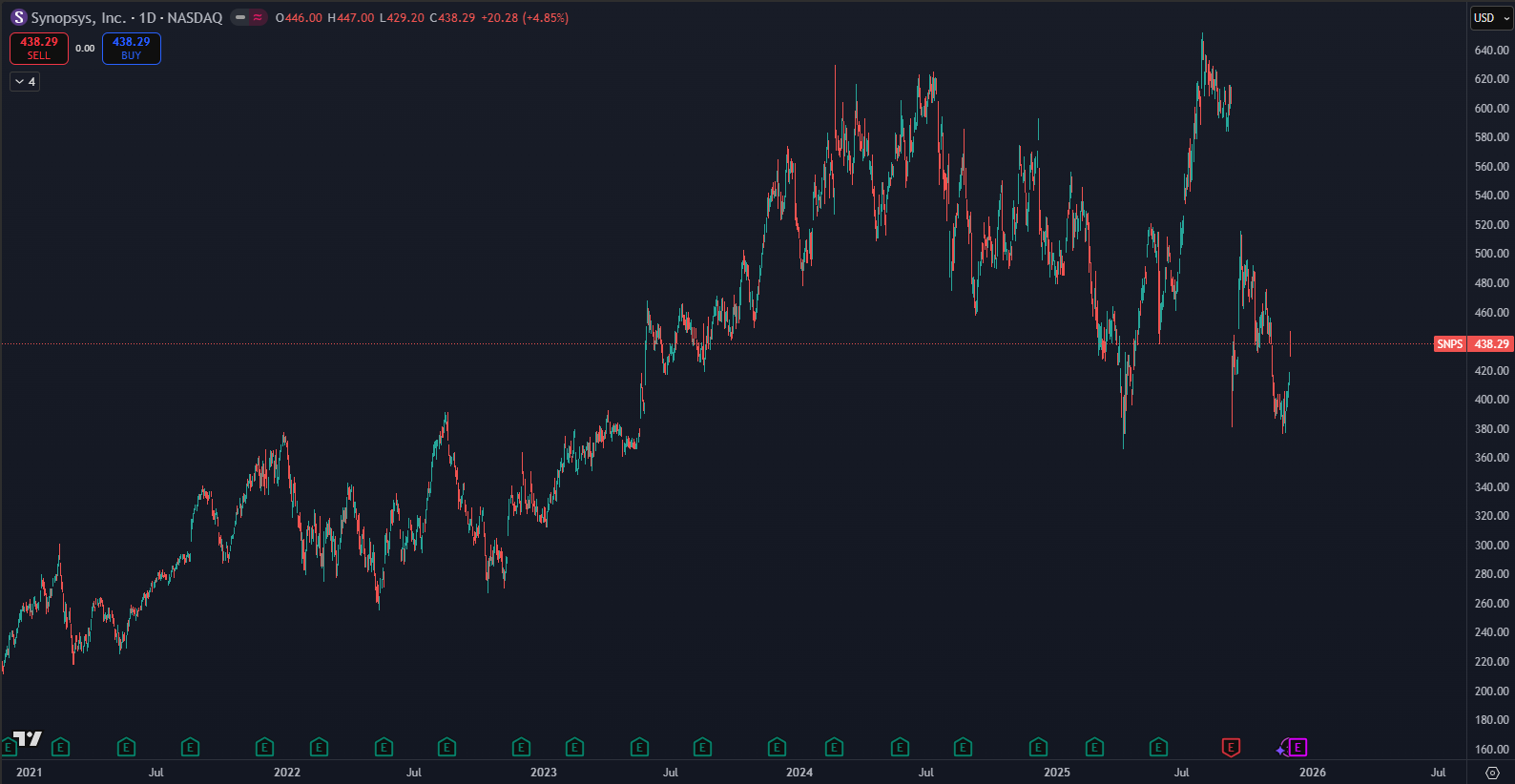 Akcie Synopsys sú momentálne veľmi atraktívne po oznámení strategického partnerstva s Nvidia, vrátane investície 2 miliárd dolárov do softvérovej spoločnosti z Silicon Valley. Partnerstvo kombinuje Nvidia AI a akcelerované výpočtové technológie s Synopsys softvérom na návrh čipov, pričom cieľom je zrýchliť aplikácie Synopsys a zaviesť agentickú AI do inžinierstva.