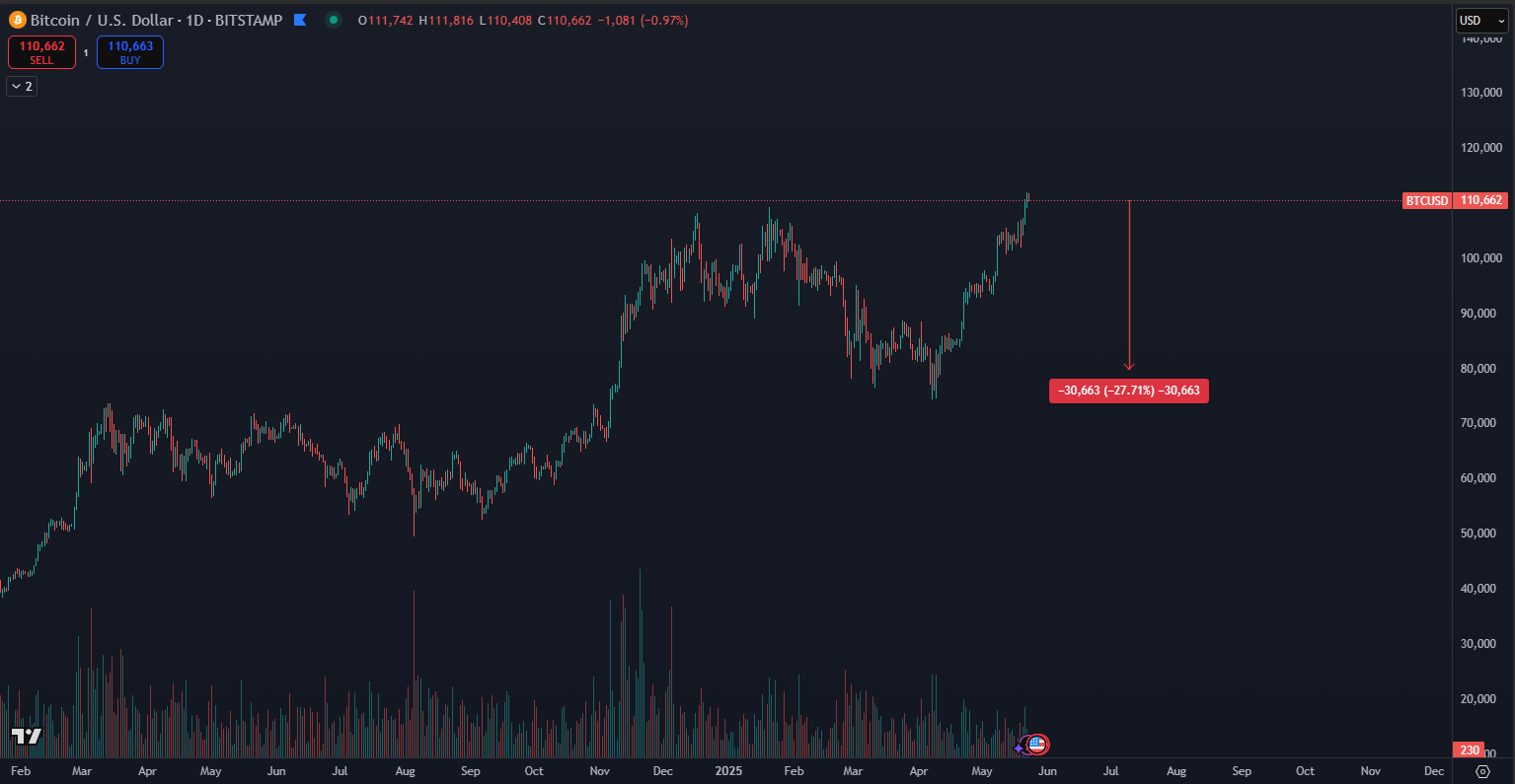 Aj keď sa to po dosiahnutí rekordu môže zdať nepravdepodobné, existuje aj pesimistický scenár, pri ktorom by cena Bitcoinu mohla klesnúť pod 80 000 dolárov. Takýto vývoj by mohli spôsobiť najmä tieto faktory: