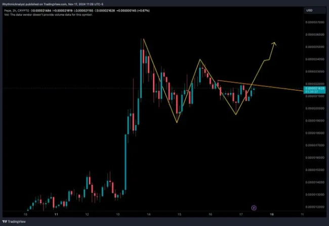 Pepe sa stal populárnym meme coinom a zvyčajne je v priamej konkurencii s inými meme coinmi ako Dogecoin a Shiba Inu. Nedávne formácie poukazujú na pozitívny trend, pričom experti pozorujú, že na grafoch je vzor dvojitého dna (W-tvar), a to môže viesť k nárastu cien.