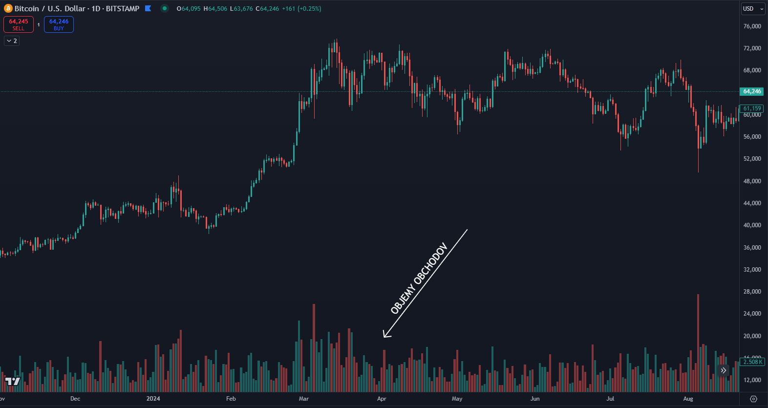 Objem obchodov je po trhovej cene najdôležitejší ukazovateľ pri akomkoľvek aktíve. Zahŕňa predaje, ale aj nákupy za dané obdobie. Čím vyšší je objem, tým menšie riziko manipulácie nastáva. Tento ukazovateľ priamo odzrkadľuje ochotu obchodníkov obchodovať danú kryptomenu, čo väčšinou naznačuje rast ceny.