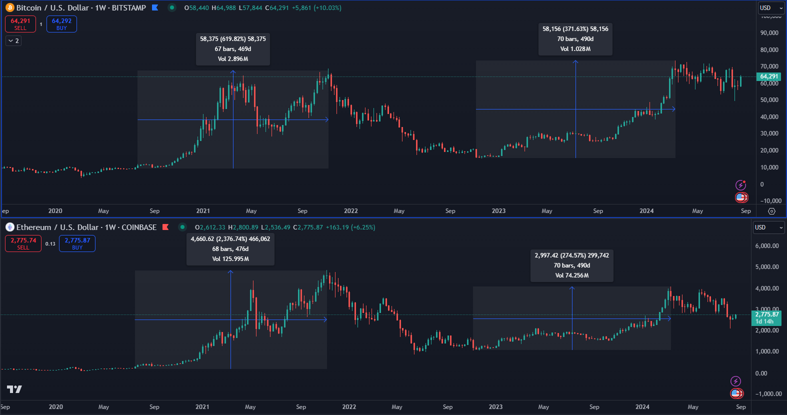 Predtým ako nakúpite kryptomenu, zamerajte sa na jej výkonnosť a porovnajte ju s historickými pohybmi Bitcoinu za rovnaký časový interval. Za predpokladu, že aspoň dva posledné cykly dosahovala kryptomena vyššie zhodnotenie ako Bitcoin, zrejme je šanca, že sa to zopakuje aj najbližší cyklus. Ale nie je to zaručené.