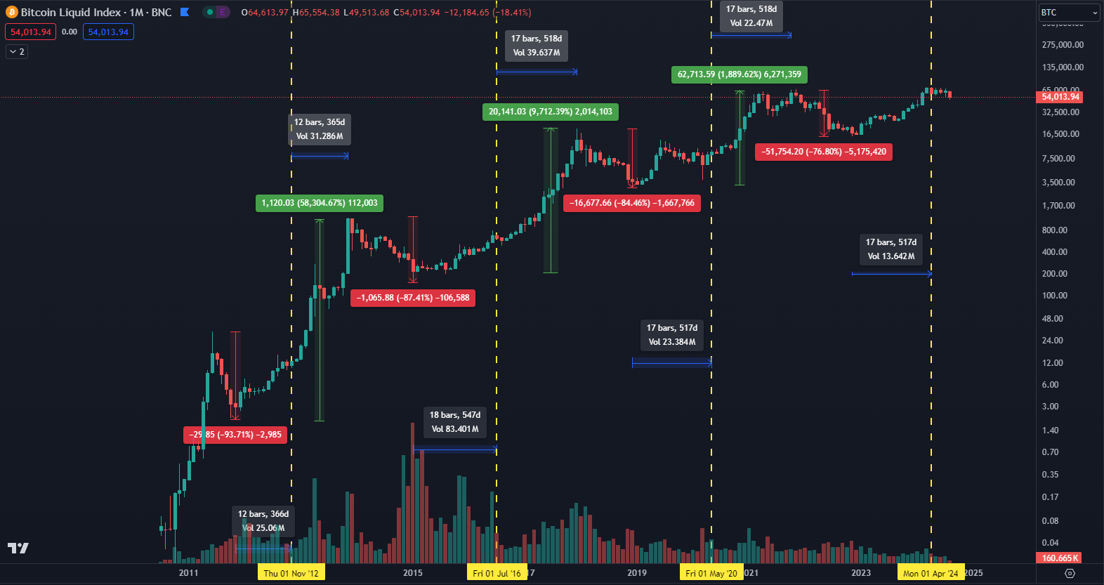 Bitcoin je najziskovejšie aktívum na svete. Pred 10 rokmi sa obchodoval za 400 dolárov. V čase písania je to už 56 000 dolárov. Samozrejme, s vyšším výnosom je spojené aj väčšie riziko a Bitcoin má aj fázy, kedy za rok môže stratiť 80 % hodnoty, avšak dlhodobý rastúci trend nemožno poprieť.