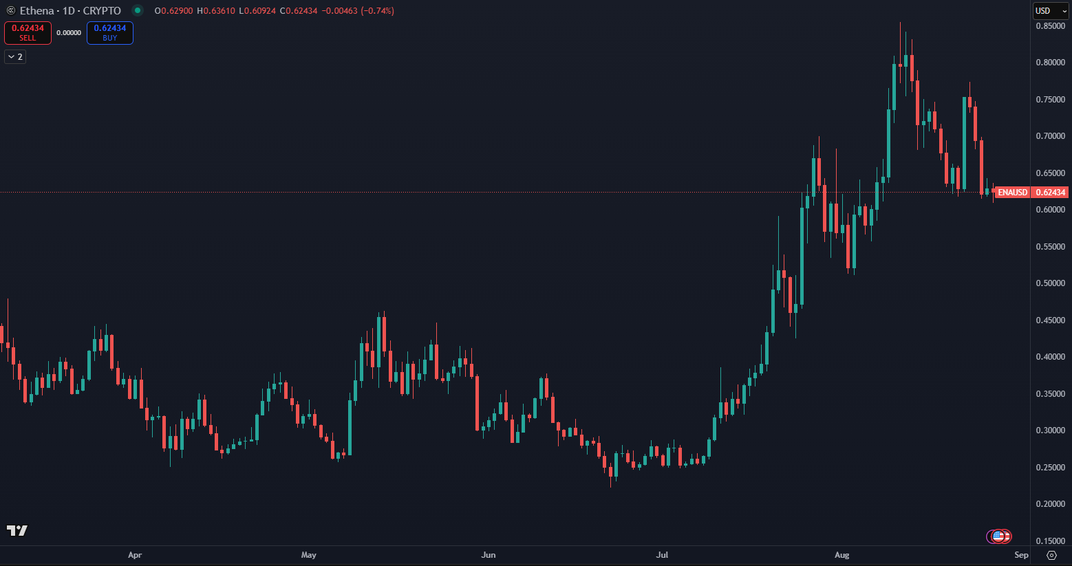 Cena kryptomeny Ethena. Zdroj: tradingview.com