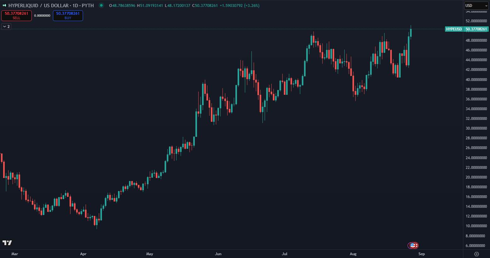 Cena tokenu HYPE. Zdroj: tradingview.com